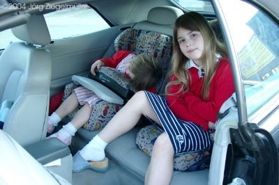 | Hier an dieser Stelle möchte ich meinen Kindern aufs allerherzlichste Danken, daß sie meinen 'Spleen' so kräftig unterstützen, mich begleiten und tatsächlich schon richtige große Fans der Concorde geworden sind..... manchmal ist es aber auch ziemlich ermüdend, wie man auf diesen Bildern vom 31.März 2004 sehen kann: